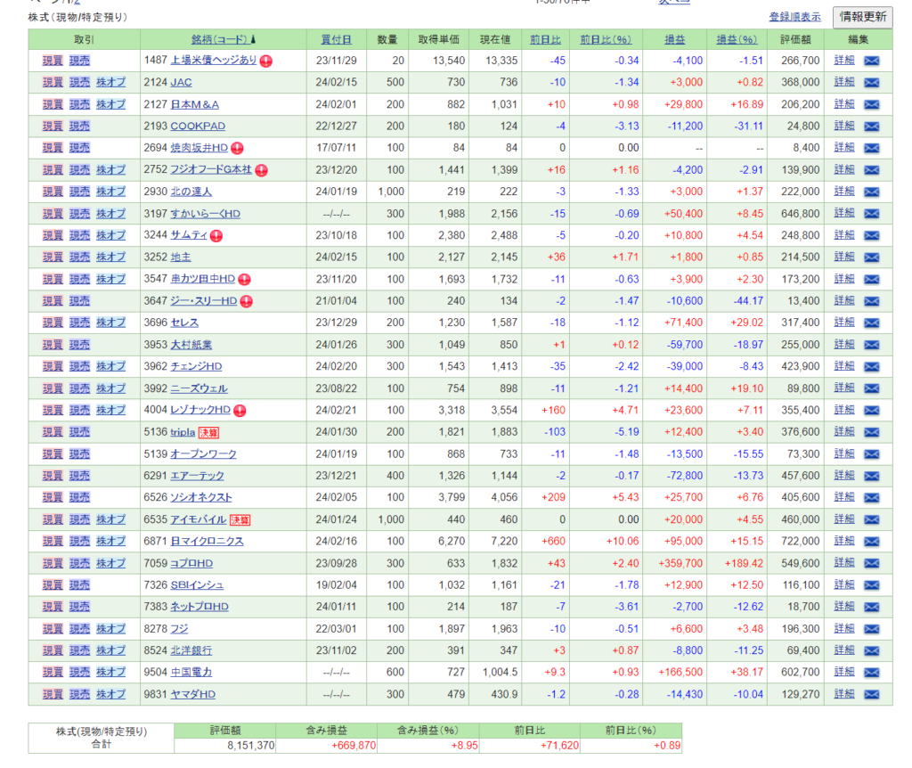 2024/2/22 9164 NISA トライト672*500 ¥336,000 NISA口座で買いました。