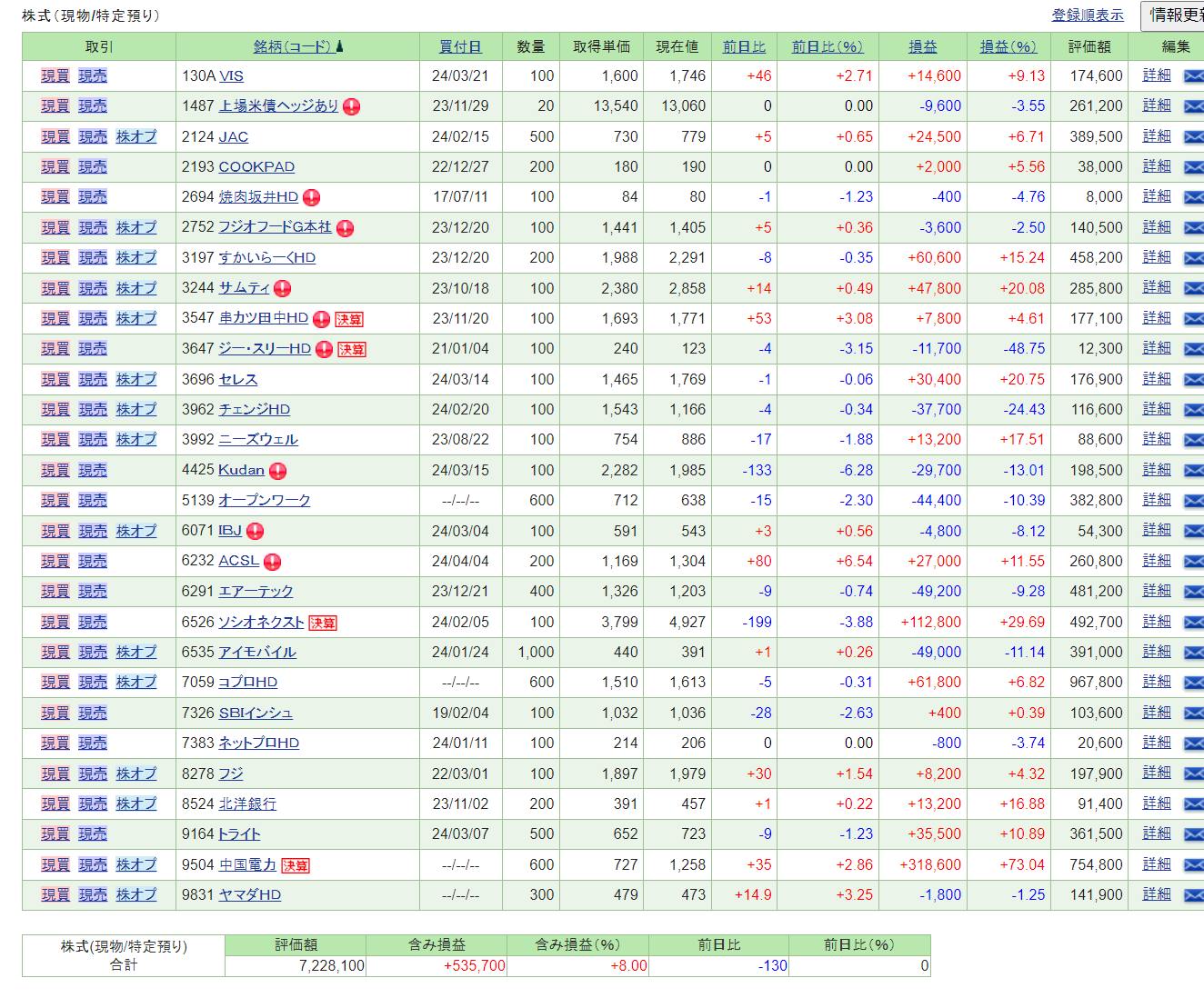 本日の売買 なし