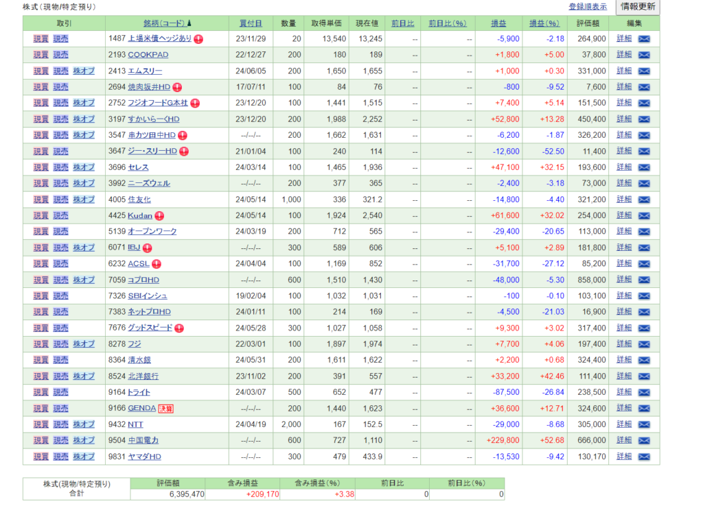 本日の売買 買い